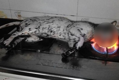 Đặc biệt, toàn bộ ảnh chụp quá trình giết mèo do chính chàng trai này khoe trên trang cá nhân. Sau khi cho chú mèo vào túi lưới, anh đã nhúng vào chậu nước cho đến chết, rồi nướng trên bếp gas.