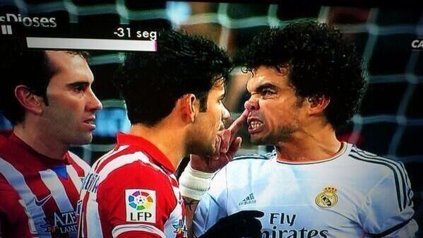 Đặc biệt ở mùa giải năm nay, các cầu thủ hai đội liên tục có những tiểu xảo để đáp trả lẫn nhau. Về phía Real, cặp trung vệ Sergio Ramos và Pepe luôn tìm đủ mọi cách để gây hấn với Diego Costa. Trong khi, chân sút gốc Brazil dùng trò bẩn như bắn nước mũi vào người Ramos. Tuy vậy, Pepe cũng không vừa khi lợi dụng sự thiếu tập trung của trọng tài để xì mũi vào người Costa.