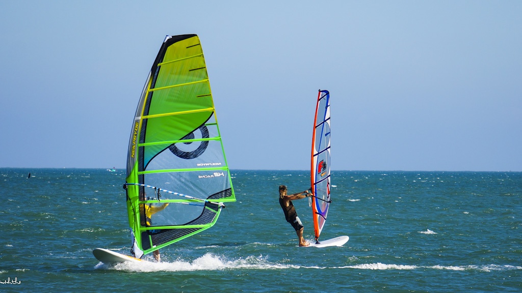 Trong môn thể thao lướt ván buồm, người chơi sử dụng ván có gắn cánh buồm, từ đó nhờ lực đẩy của gió lướt trên mặt biển. Những tai nạn như ngã, đập đầu vào cột buồm... có thể xảy ra khi bạn mới làm quen. Tuy nhiên, khi đã thành thục, bạn sẽ mê cảm giác lướt trên mặt biển. Ảnh: Minh Thơ.
