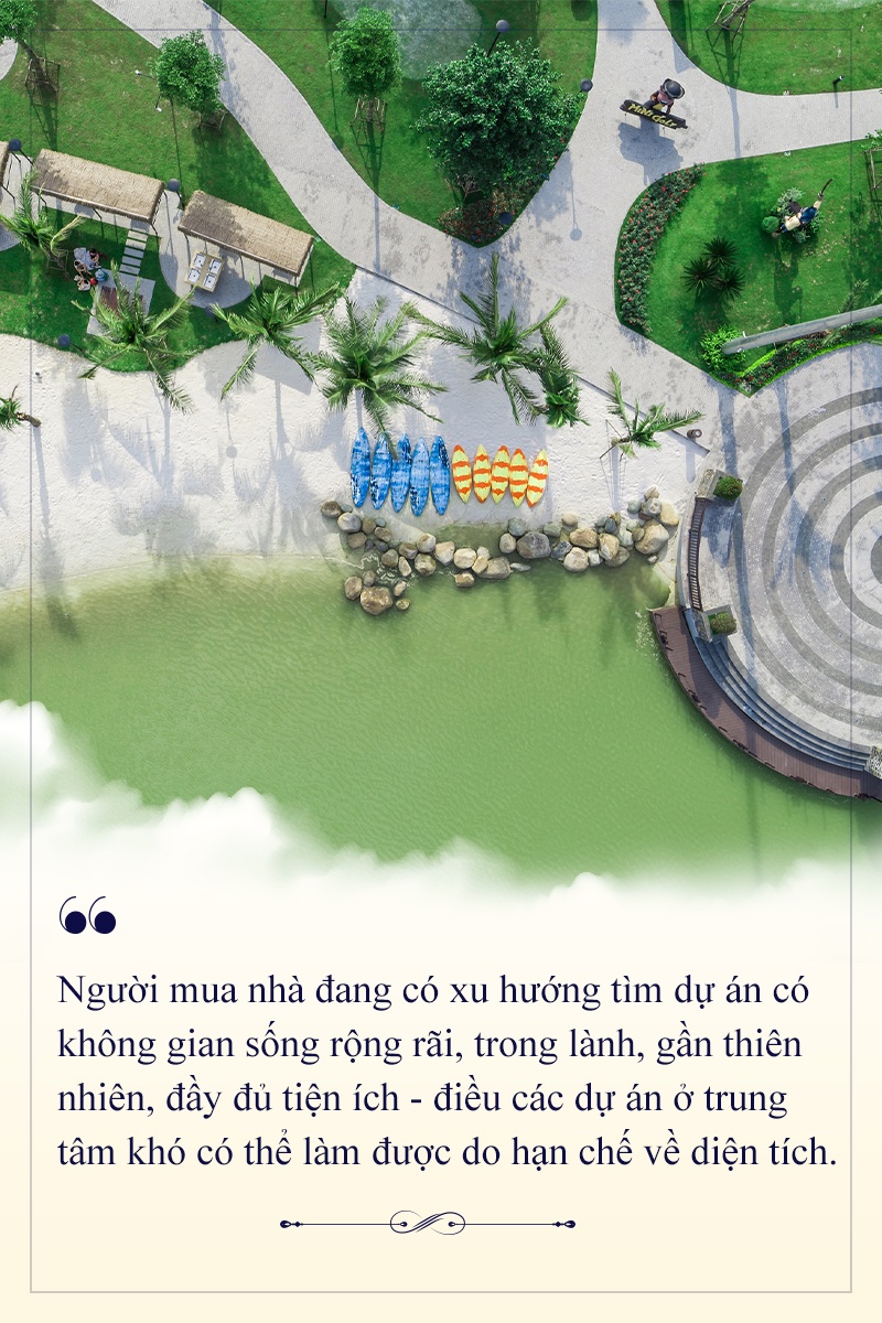 Tuy nhiên, thực tế, việc đánh giá một dự án chỉ dựa vào vị trí gần trung tâm đã lỗi thời. Người mua nhà, đặc biệt là giới nhà giàu, đang có xu hướng tìm những dự án ở xa trung tâm, tận hưởng không gian sống rộng rãi hơn, gần thiên nhiên, trong lành, trong khi các tiện ích vẫn đầy đủ, đồng bộ.