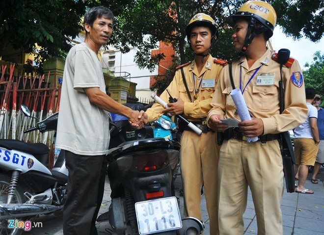 Chiều 26/8, anh Cường (30 tuổi, ở quận Đống Đa, Hà Nội) đi trên đường Đê La Thành phát hiện chiếc xe Wave của mình mất 2 tháng trước đó. Bí mật bám theo đến chân cầu vượt Mai Dịch (quận Cầu Giấy), thấy cảnh sát giao thông đang làm nhiệm vụ, anh này nhờ phối hợp cùng vào cuộc.