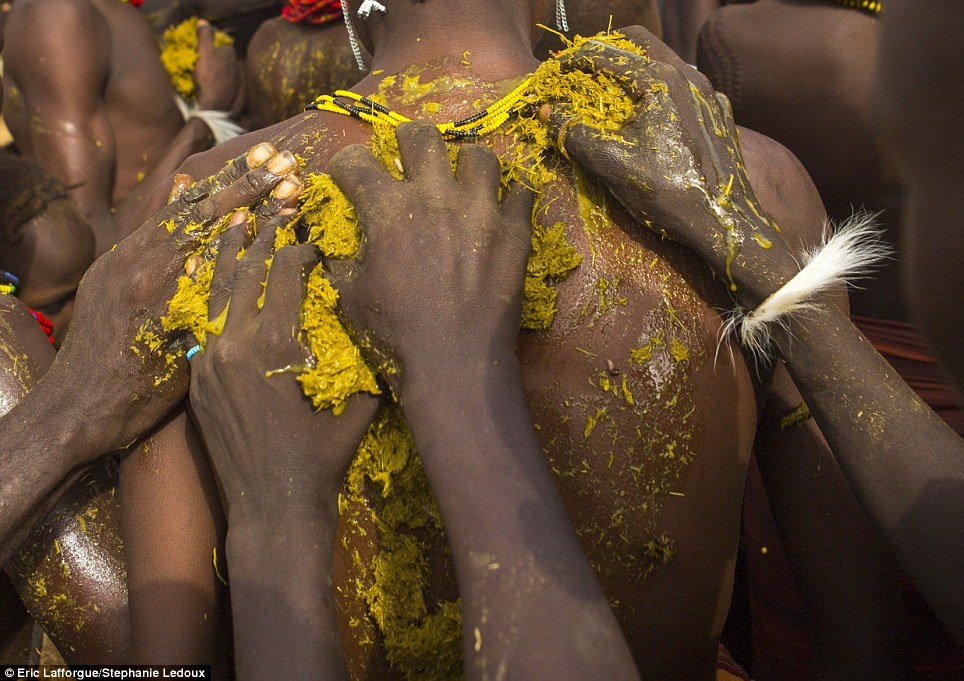 Họ sử dụng mỡ động vật hoặc bơ trộn với đất đỏ và bôi lên người để bảo vệ làn da của mình. |