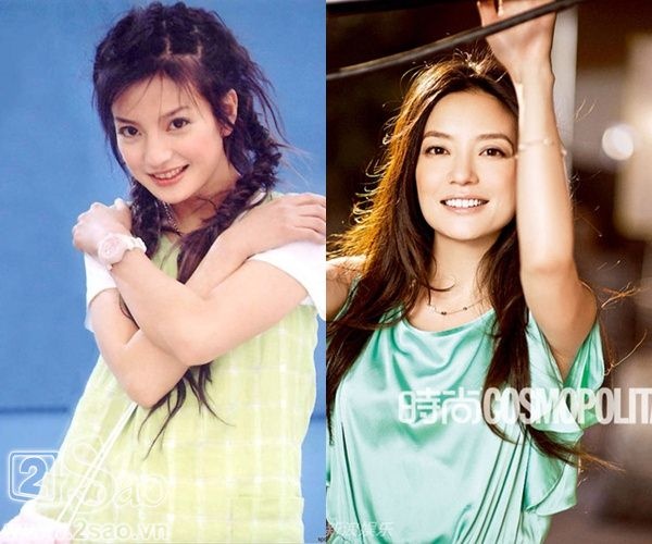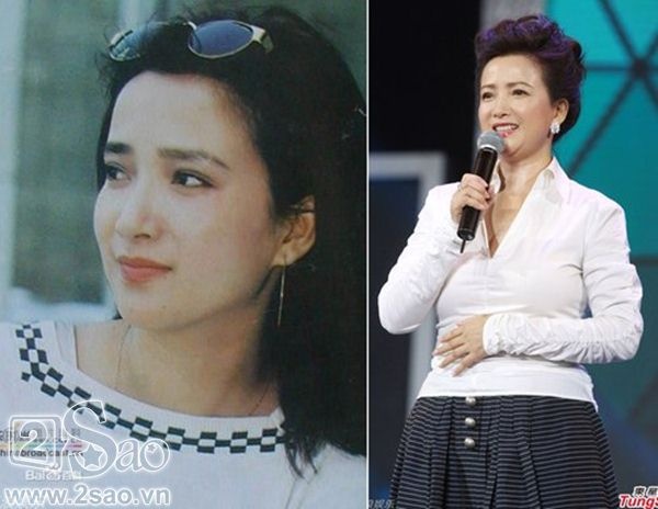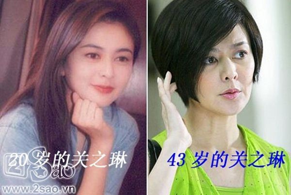 Quan Chi Lâm lộ rõ nét thời gian trên khuôn mặt. Ảnh trái chụp nữ diễn viên này 20 tuổi, ảnh phải là khi 43 tuổi.