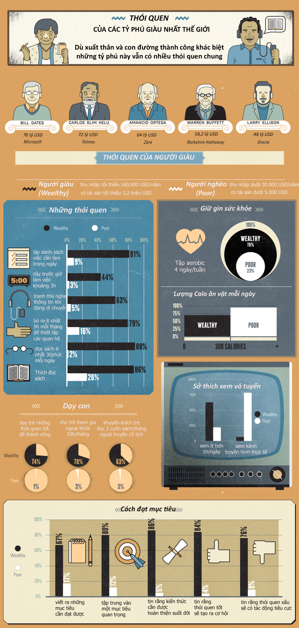 Những người giàu nhất thế giời có thói quen dậy rất sớm, hiếm khi xem truyền hình thực tế và thường bỏ ra ít nhất 5 tiếng mỗi tháng để tạo lập các mối quan hệ.