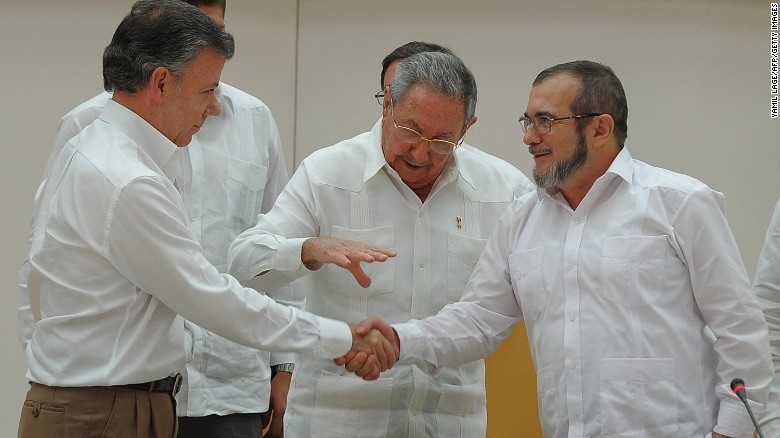 Ông Juan Manuel Santos là tổng thống và Timoleon Jimenez là lãnh đạo của Lực lượng Vũ trang Cách mạng Colombia. Hai người đã đồng ý đề xuất về một hướng đi hoà bình vào năm nay, đặt nền móng cho một hiệp ước chính thức.