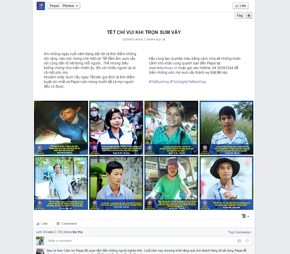Đó chỉ là ba trong rất nhiều hoàn cảnh khó khăn được các bạn trẻ tìm kiếm và chia sẻ trên nhiều fanpage uy tín của giới trẻ như Humans of Hanoi, Humans of Saigon và mới đây nhất fanpage của nhãn hàng Pepsi. Những tấm hình, những tâm sự đầy cảm xúc về ước mơ được sum vầy ngày Tết của họ khiến không ít bạn trẻ phải nhìn lại, trân trọng điều mình đang có.