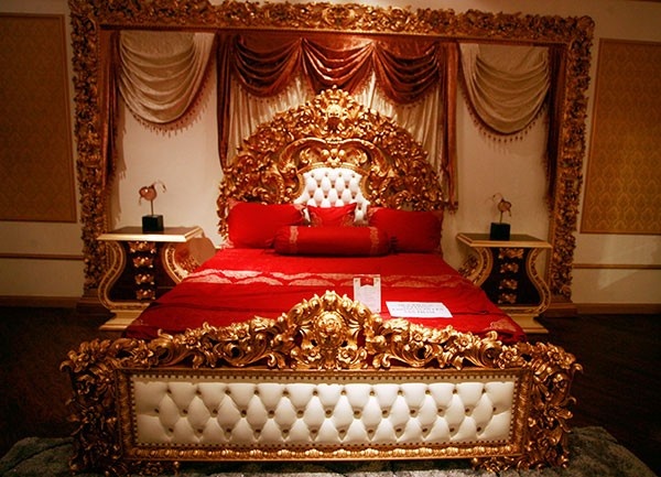 Bộ giường ngủ Hoàng gia 480 triệu đồng, dát vàng 24k, bọc da thuộc thủ công, gỗ Beech nhập khẩu từ châu Âu. |