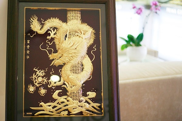| Bức tranh rồng bay được dát vàng 24K, giá gần 150 triệu đồng. (Ảnh: Lê Hiếu) |