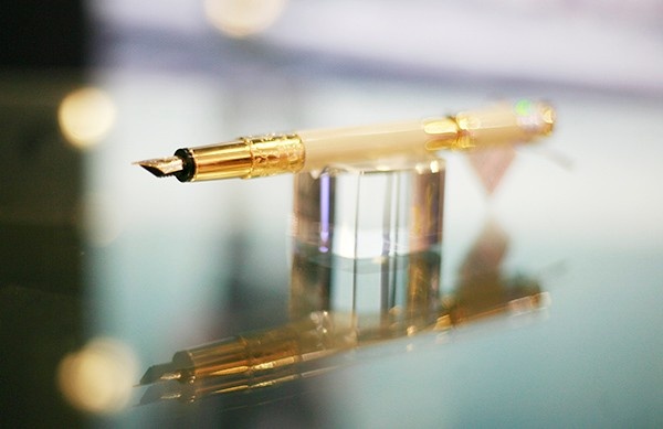| Bút mực dát vàng 18K có giá 19 triệu đồng. Những vật phẩm xa xỉ trên được bán trong một trung tâm thương mại lớn tại Việt Nam. (Ảnh: Lê Hiếu) |