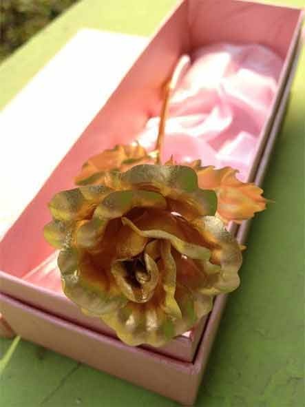 | Xuất hiện trên thị trường từ năm 2012, năm qua, hoa hồng dát vàng không còn quá đắt, chỉ còn 600.000 đồng/bông. |