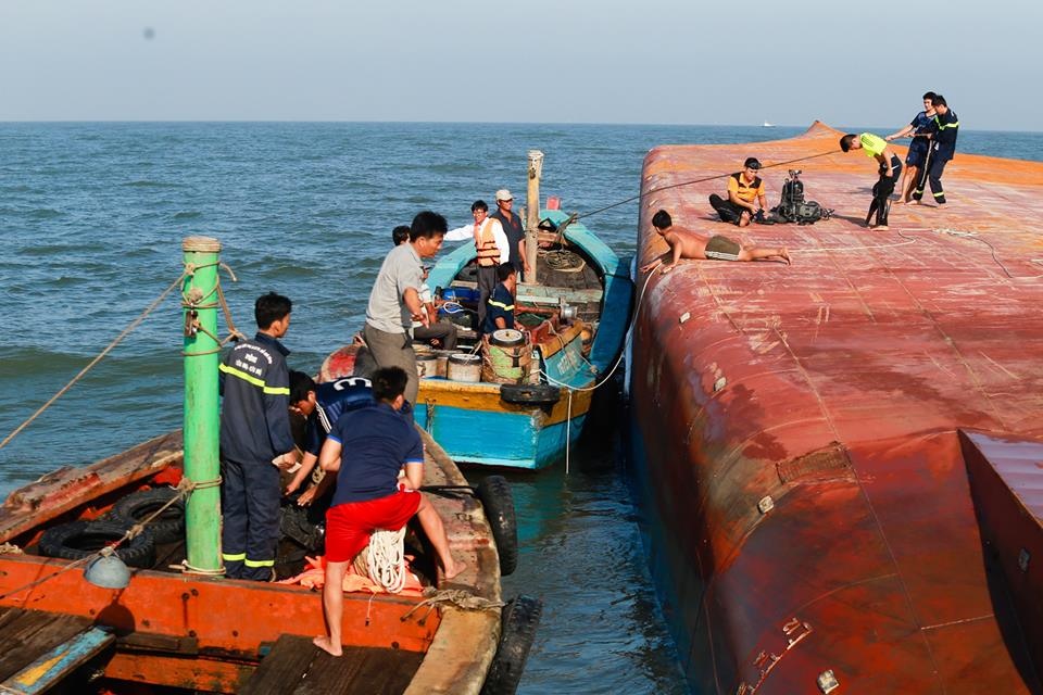 Một sà lan neo đậu gần đó phát hiện sự việc đã tới cứu được 12 nạn nhân, còn 5 người mất tích. Nhiều lực lượng tích cực cứu nạn, cứu hộ. Đến trưa 31/10, thợ lặn và lực lượng chức năng đã đưa được một thuyền viên ra ngoài.
