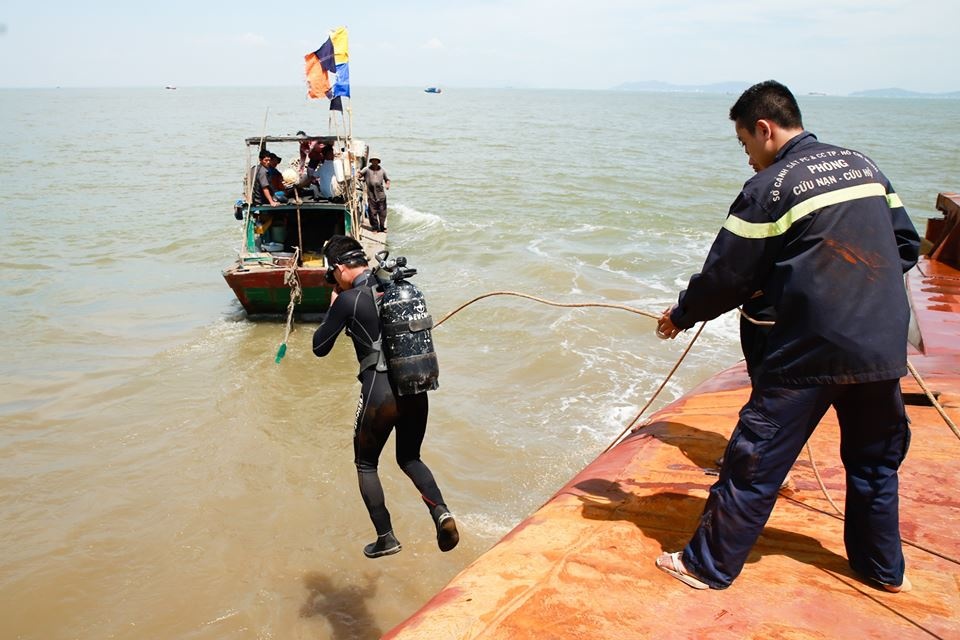 | Nhà chức trách huy huy động hơn 10 thợ lặn nhiều kinh nghiệm đến hiện trường, lặn xuống biển vào các khoang thuyền để tìm nạn nhân. |
