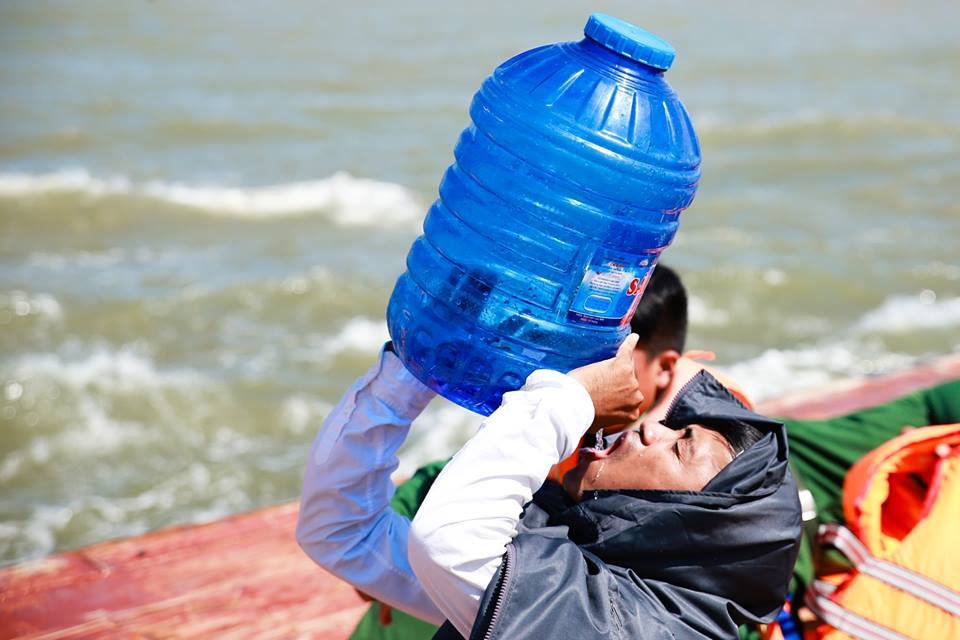 | Trời nắng nên mất nước rất nhanh, các chiến sĩ tranh thủ tiếp nước. |
