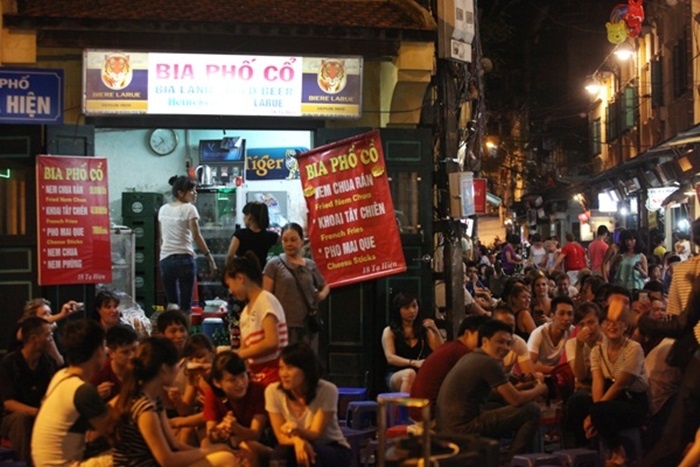Chỉ với vài trăm mét chiều dài, con phố Tạ Hiện (Hoàn Kiếm, Hà Nội) mỗi khi đêm về, bia hơi, bia chai, bia lon lại tràn xuống đường. Hàng quán nào cũng chỉ cần vài chiếc ghế nhựa, thế là khách thoải mái tám chuyện. |