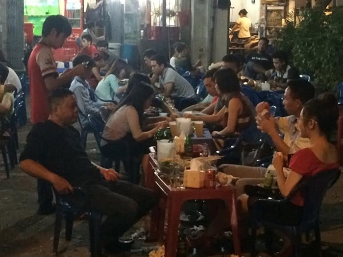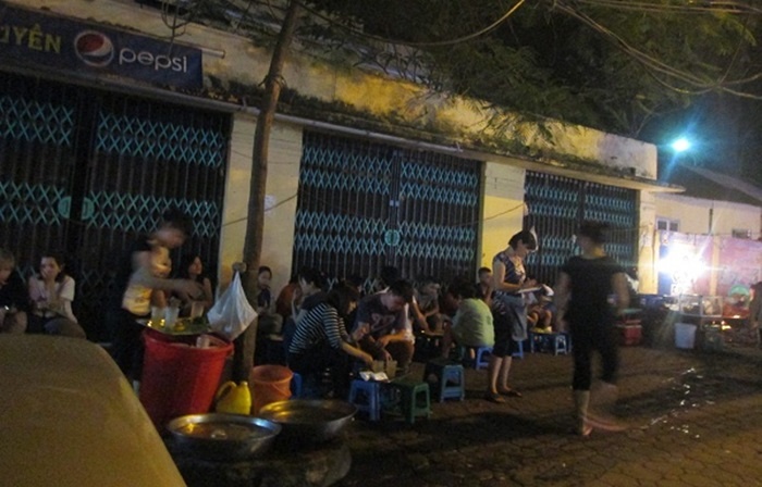Những quán ốc trên đường Trấn Vũ (quận Ba Đình) luôn nườm nượp khách. |