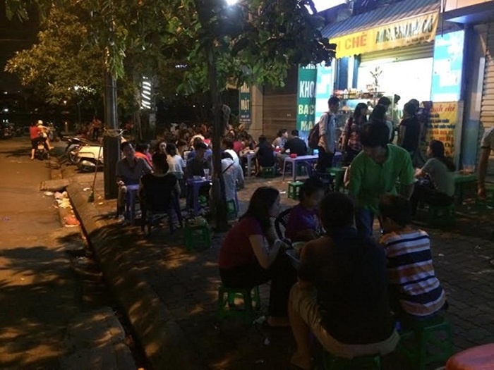 Những hàng chè trên đường Trần Huy Liệu (quận Ba Đình) luôn đông đúc. |
