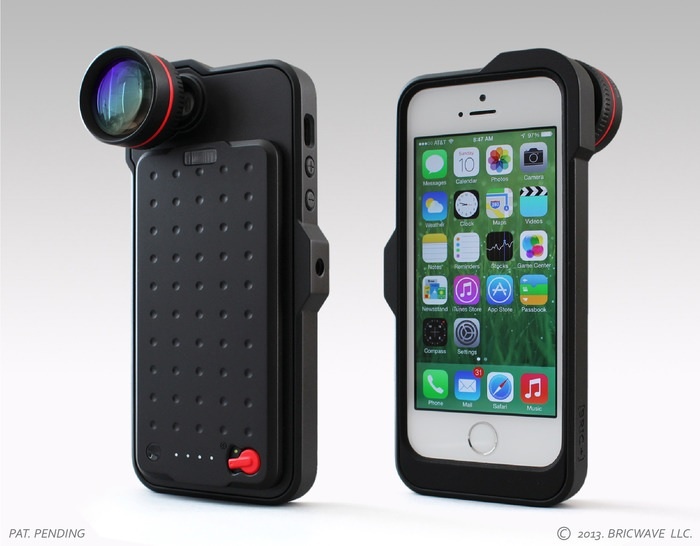 Bric+ Một số vỏ case tích hợp ống kính ngoài, một số tích hợp thêm pin cho iPhone, riêng Bric+ sở hữu cả 2 thứ đó. Bric+ bổ sung thêm cho iPhone 5/5S một ống kính zoom quang 3,5x, pin 2.450 mAh. Bên cạnh đó, nó còn được tích hợp đèn flash cường độ mạnh để chụp hình ban đêm, ngàm gắn với tripod và đồng hồ đo thời lượng pin của máy. Chiếc vỏ case đa năng này sẽ sớm được bán ra thị trường với giá khoảng 115 USD. Ảnh: Bricwave. |