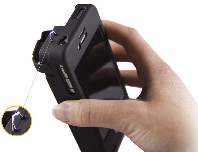 Yellow Jacket Chiếc vỏ case Yellow Jacket trị giá 99 USD vừa có khả năng bảo vệ chiếc smartphone của bạn khỏi những va đập không cần thiết, vừa là một công cụ hữu hiệu bảo vệ chính bản thân bạn, bởi nó có khả năng phát ra dòng điện 650.000V khi cần thiết. Bạn cũng không cần quá lo lắng về việc chẳng may bị "gậy ông đập lưng ông", bởi có một công tắc để kích hoạt chế độ phóng điện khi cần thiết. |