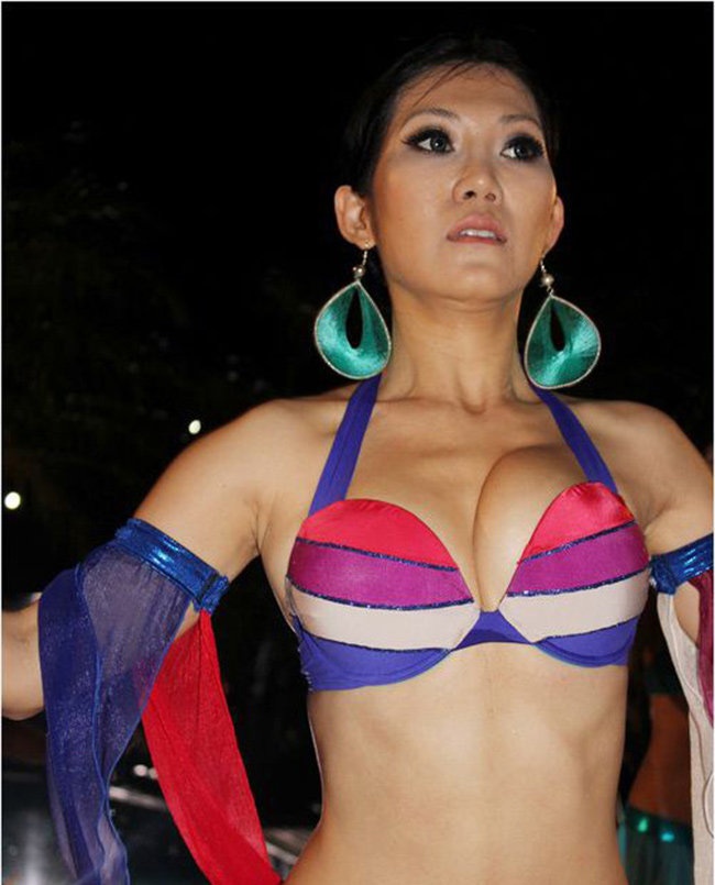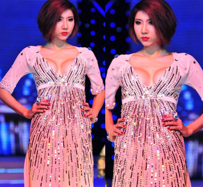 | Người mẫu Phi Thanh Vân với 'núi đôi' bên cao bên thấp. |