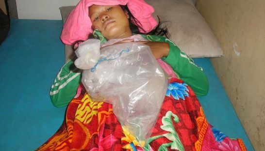 | Sản phụ Leak thẫn thờ sau khi mất con. Ảnh: The Phnom Penh Post. |