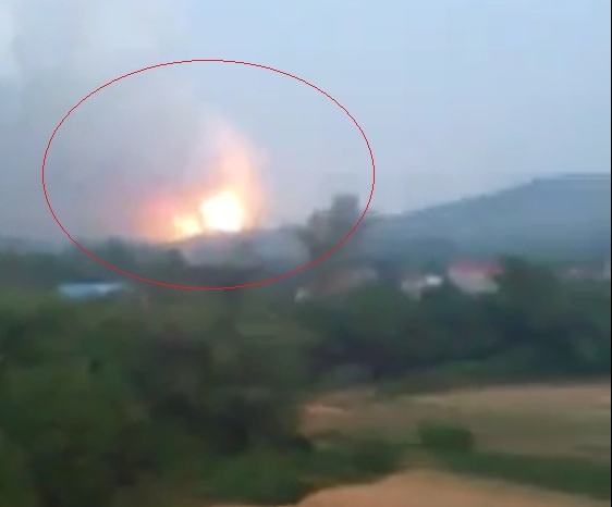 | Hình ảnh kinh hoàng vụ nổ kho pháo hoa nhìn từ xa. |