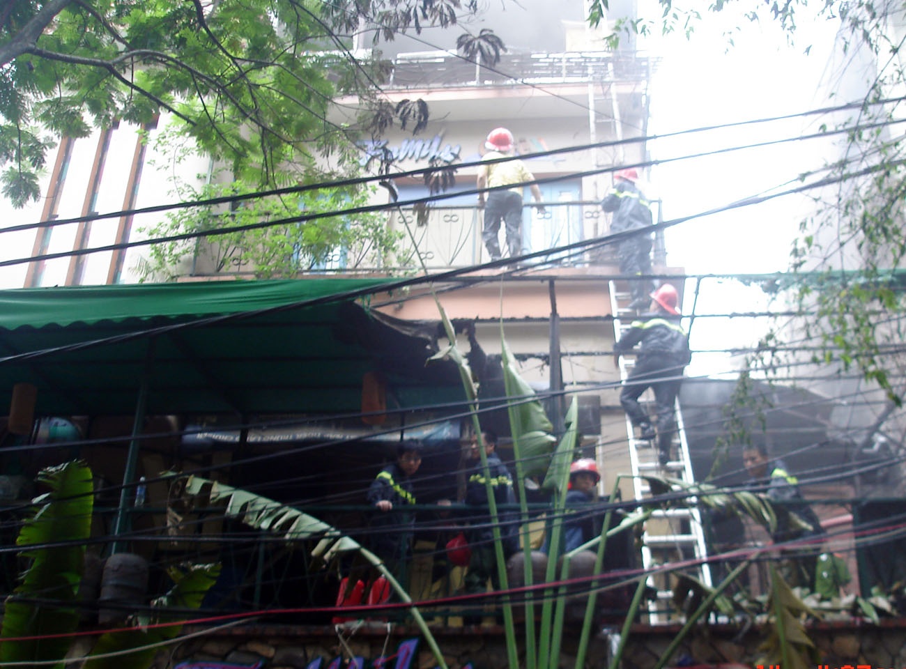 Tháng 5/2010, tại tòa nhà 14 tầng chuyên kinh doanh dịch vụ karaoke, cafe trên phố Trần Duy Hưng (quận Cầu Giấy, Hà Nội) cũng xảy cháy. Gốc lửa ở một phòng hát tầng 3, gần cầu thang nên số nhân viên làm việc ở các tầng trên đã “vướng” phải khói dày đặc, không thể thoát chạy được xuống đất. Ảnh: Việt Đức.