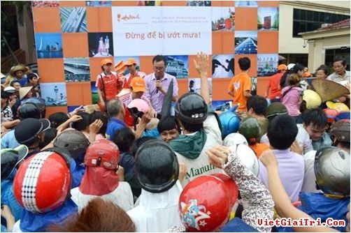 Khi đại biểu chưa nói hết nội dung thì hàng trăm người đã đổ xô lên sân khấu “cướp" áo mưa từ tay ban tổ chức. Nhiều người khoe: “Tôi đã lấy được 5 - 6 chiếc rồi, giờ cất đi và chạy vào lấy tiếp”.