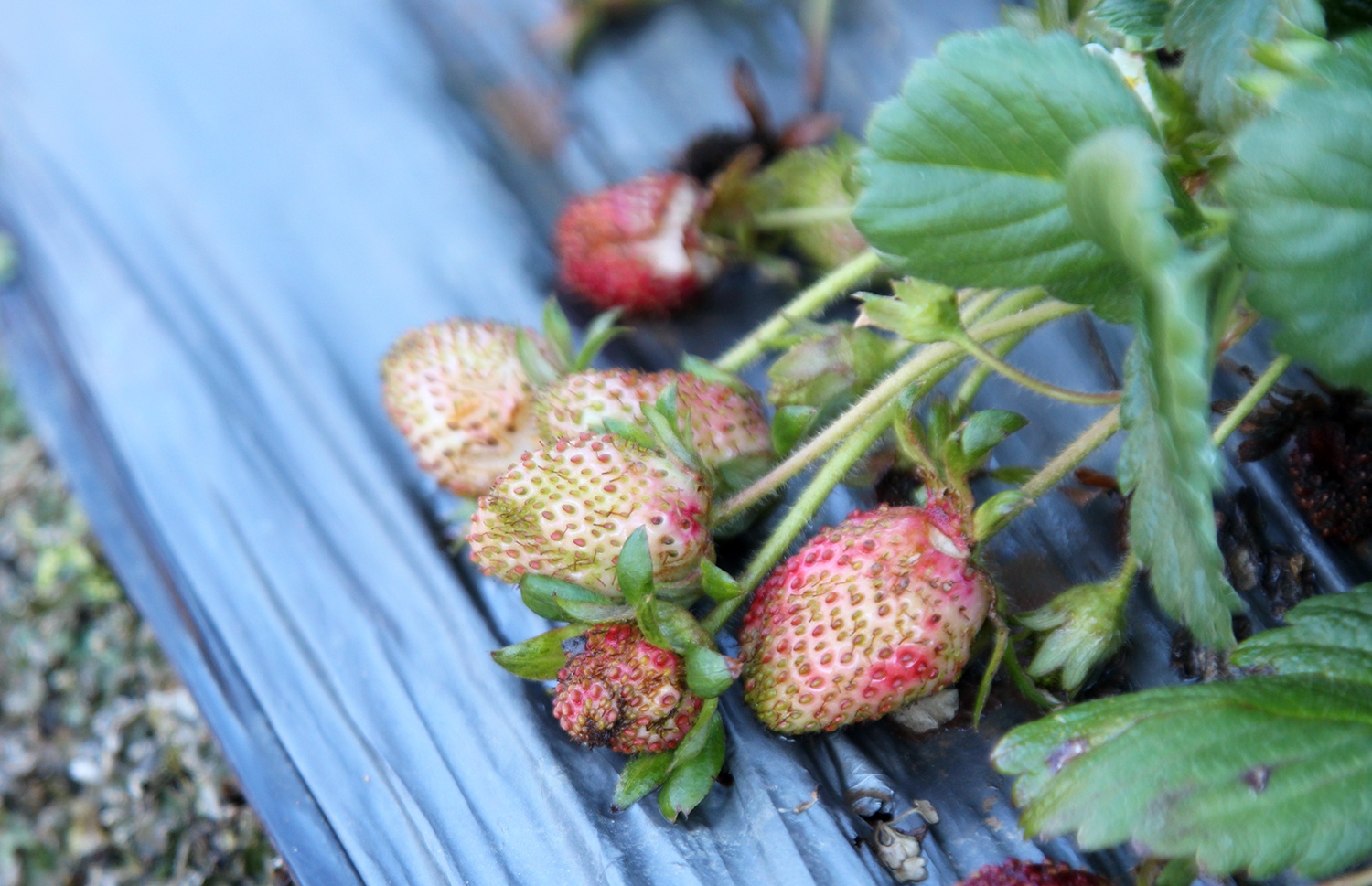 Trồng trên ruộng để tiết kiệm chi phí đầu tư nhà kính, nhà vườn thường phải dùng các loại bạt để lót khi cây ra trái, vì một số giống dâu ngoại trái không tiếp xúc trực tiếp được với đất.