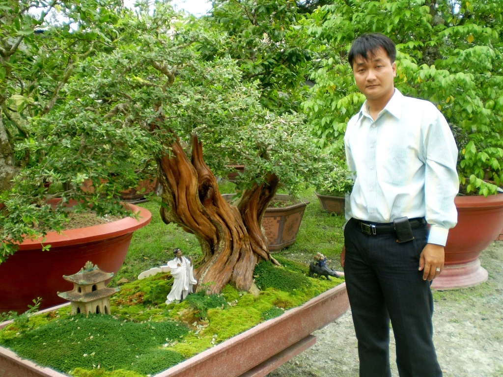 Anh Ngũ Quốc Thông ở phường An Hòa, quận Ninh Kiều, thành phố Cần Thơ, là ông chủ trẻ vườn kiểng hơn 40 tuổi đang sở hữu trên 100 tác phẩm kiểng nghệ thuật, trong đó có khoảng 20 cây giá trị từ 50 đến 400 triệu đồng.