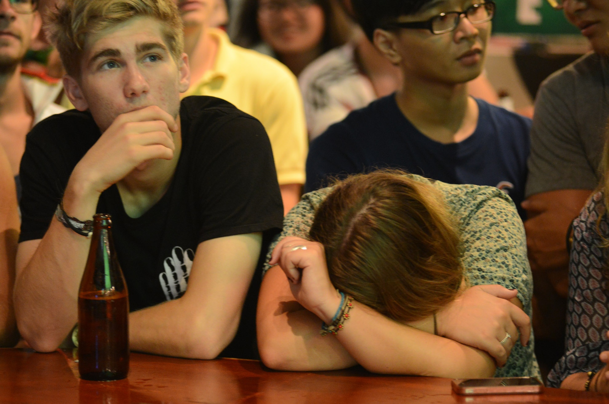 | Trận đấu kéo dài hết 90 phút và bước vào hiệp phụ khiến một số CĐV tỏ rõ sự mệt mỏi và căng thẳng. |