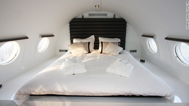 Cửa thoát hiểm của một chiếc Boeing 727 được chuyển đổi thành lối ra vào của một phòng nghỉ hạng sang. Thiết kế độc đáo nhưng tiện nghi khiến khách sạn máy bay luôn thu hút đông đảo hành khách.