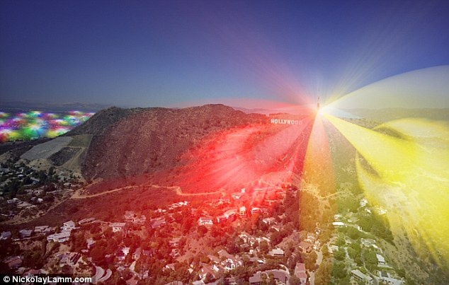 Màu sắc khác nhau thể hiện những tần số di động riêng của mỗi trạm phát. Người ta dựng hàng trăm trạm thu, phát sóng di động trong thành phố để đáp ứng nhu cầu thông tin liên lạc của người dân. Nó tạo ra một bức tranh khá độc đáo mà con người không thể nhìn thấy bằng mắt thường. |