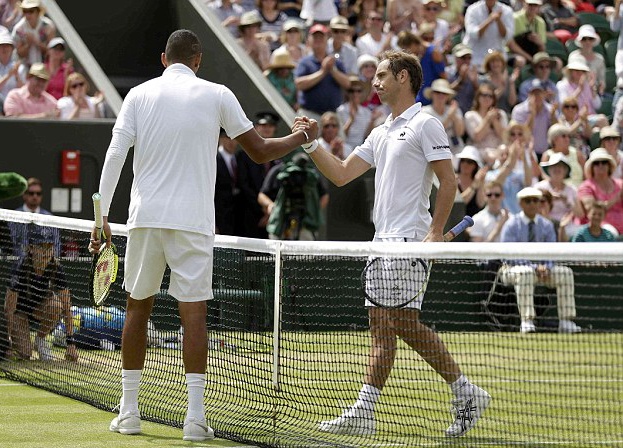 | Nick Kyrgios đã chính thức chia tay Wimbledon sau thất bại 1-3: 5-7, 1-6, 7-6(7), 6-7(6) trước Richard Gasquet tại vòng 4. Không những đối mặt với nỗi buồn bại trận, hạt giống số 26 có nguy cơ nhận án phạt lên tới 250.000 USD từ ban tổ chức giải Grand Slam thứ 3 trong năm. |