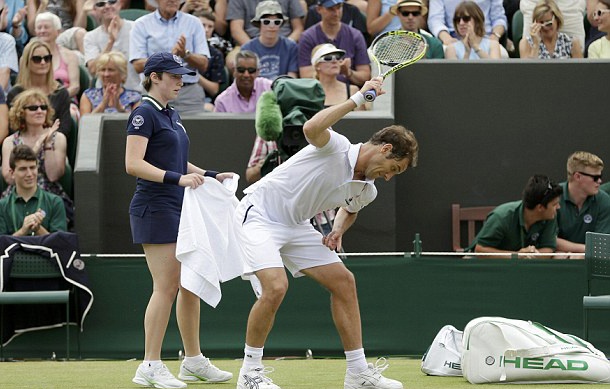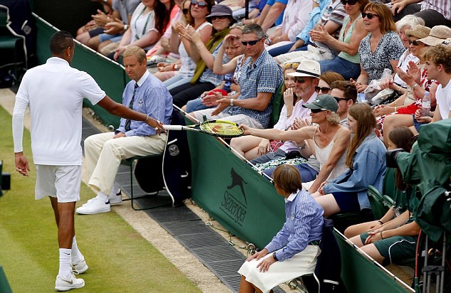 | Tay vợt thứ 29 thế giới tặng vợt cho người hâm mộ. Cách đây 1 năm, anh từng vào đến tứ kết Wimbledon sau chiến thắng gây sốc trước Rafael Nadal tại vòng 4. |