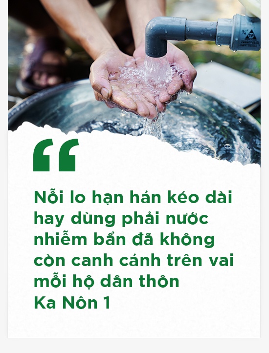 Nước sạch về thôn, cuộc sống trở nên thoải mái, sức khỏe người dân theo đó cũng được đảm bảo. Bữa cơm thêm thơm ngon và bổ dưỡng nhờ được nấu từ nguồn nước ngọt lành. Nỗi lo hạn hán kéo dài hay dùng phải nước nhiễm bẩn đã không còn canh cánh trên vai mỗi hộ dân thôn Ka Nôn 1.