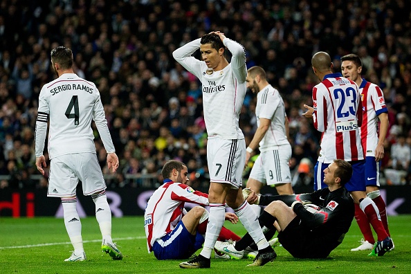 | Nỗi thất vọng của Ronaldo và đồng đội khi Real bị Atletico đánh bại với tỷ số 2-4 sau hai lượt trận tại vòng 1/8 Cúp nhà vua. |