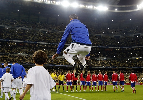 | Như thường lệ, Ronaldo ra sân với cú giậm nhảy rất cao. Nó được xem như là hành động trút bỏ sức ép hoặc sức bật tinh thần trước khi bước vào trận đánh lớn. |