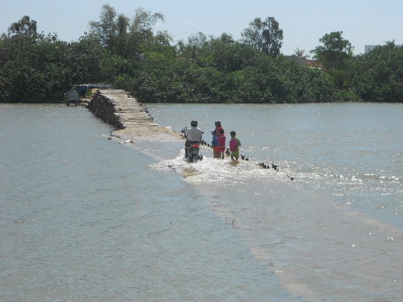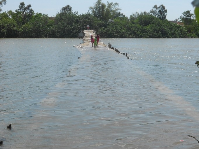 Những khi nước lên, một nửa phần cầu sẽ bì chìm trong nước.