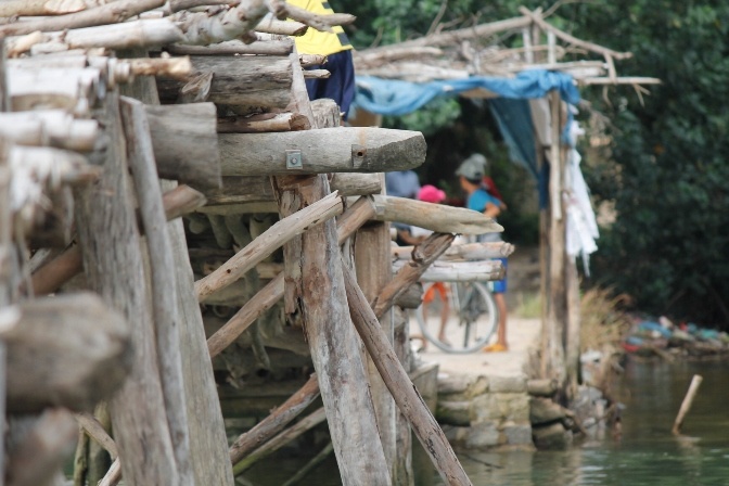 Cầu được bằng những vật dụng khá thô sơ và đến thời kỳ mục nát, gây nguy hiểm cho người qua cầu.