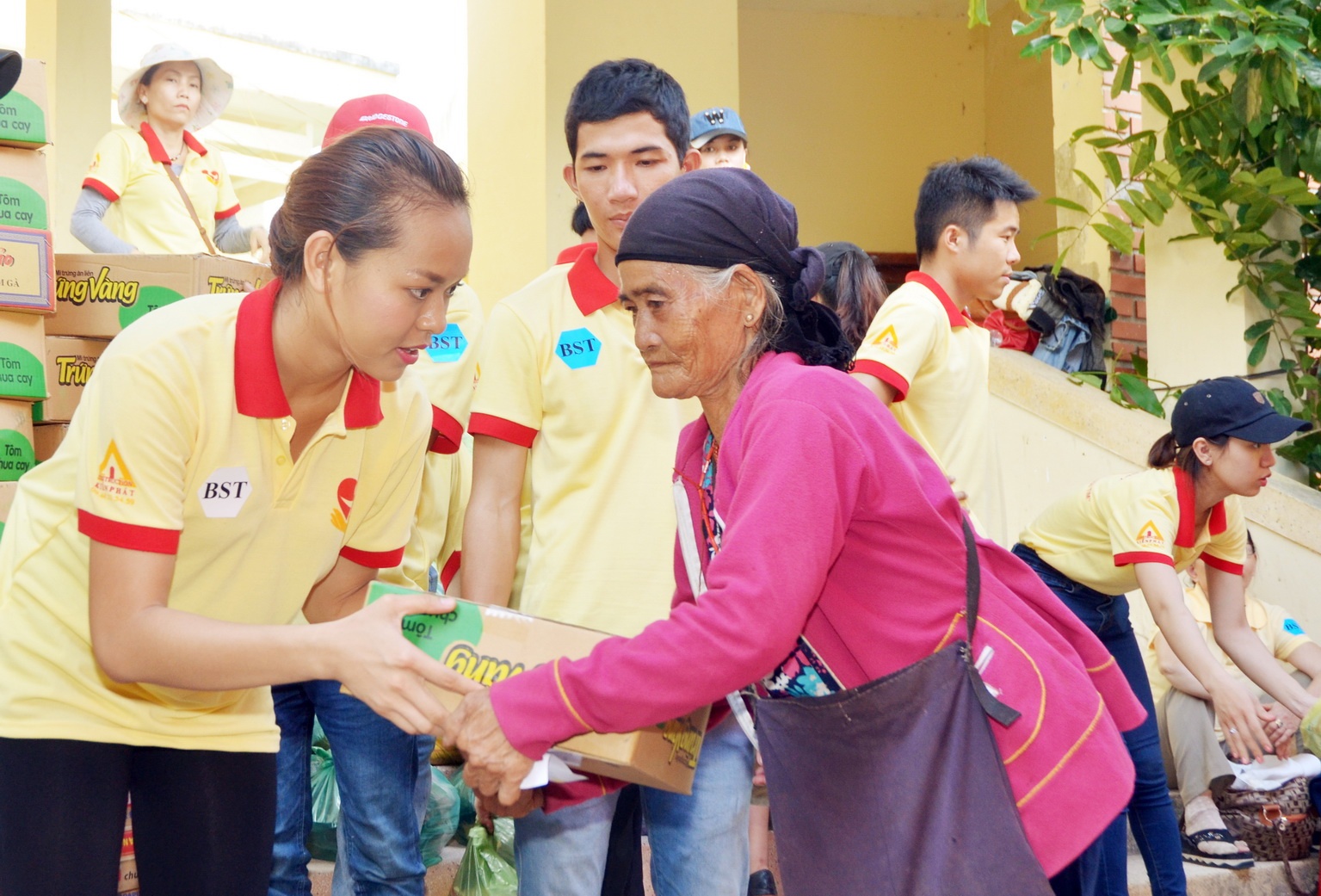 | Cô không ngại khó khăn di chuyển bằng xe suốt 27 tiếng liên tục từ SG đến huyện Tây Sơn để làm thiện nguyện. Tại đây, cô đã đội nắng nhiều tiếng đồng hồ liền cùng đoàn để có thể trao quà, hỏi thăm cho các đồng bào dân tộc thiểu số. |