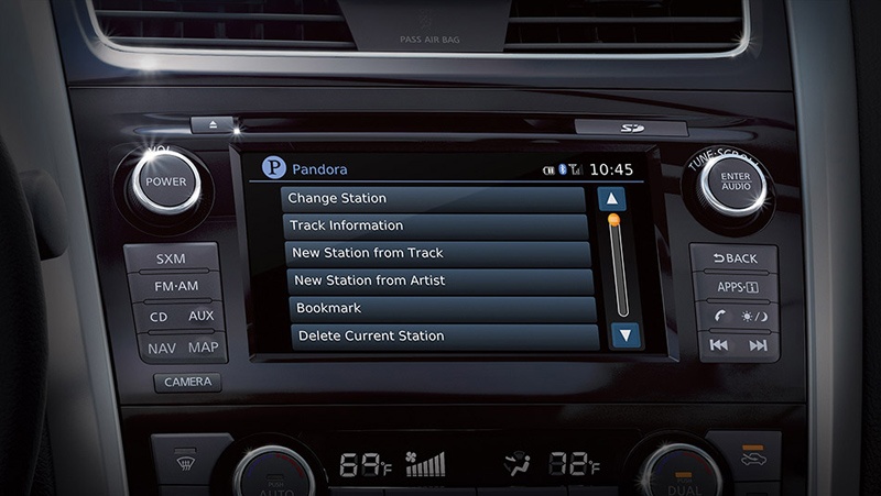 | Nissan Altima 2013 thiết kế ghế mới, bọc da. Hệ thống Nissan Connect cho phép kết nối điện thoại thông minh với khả năng vào mạng Internet và nhắn tin rảnh tay. |