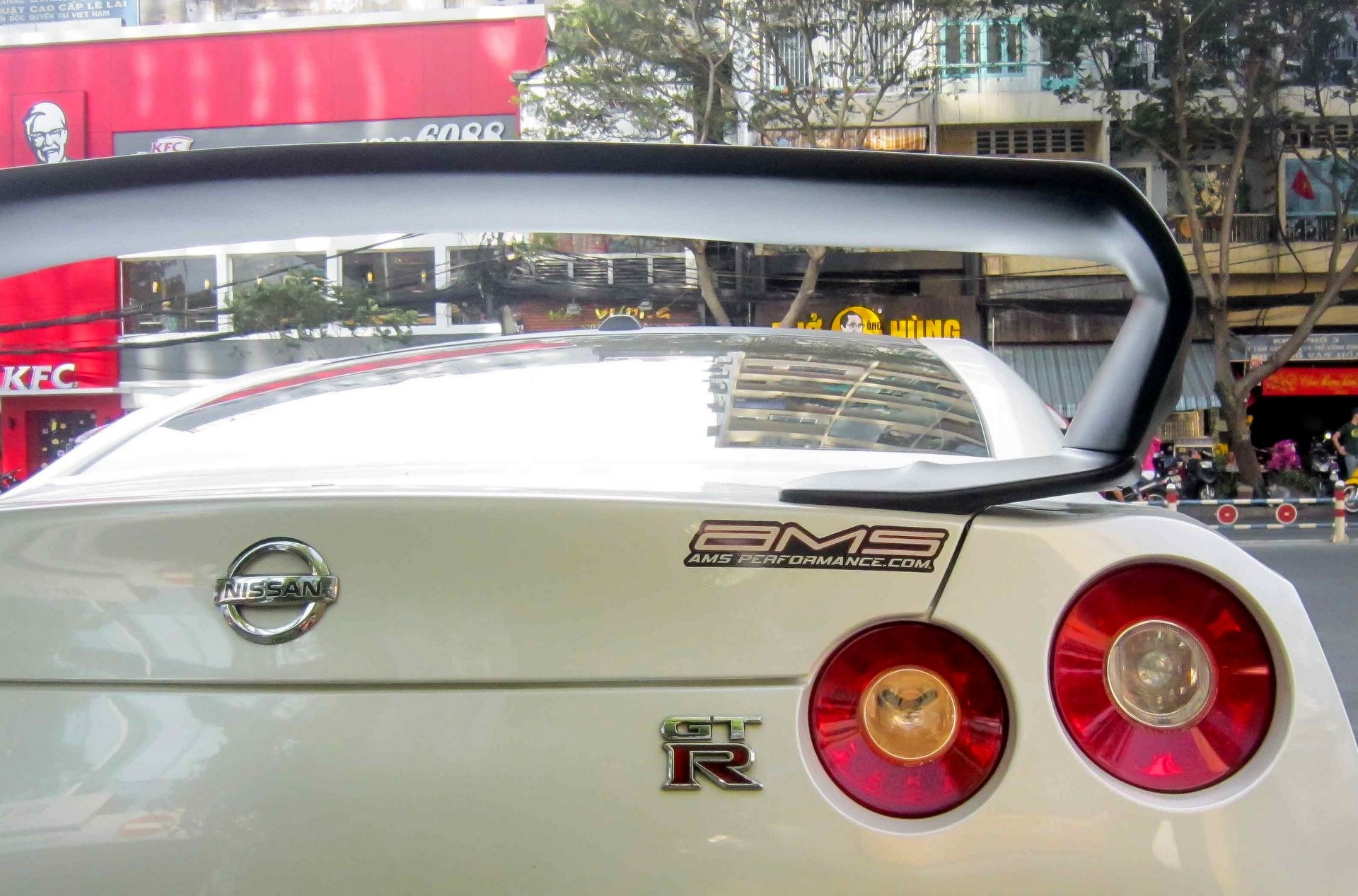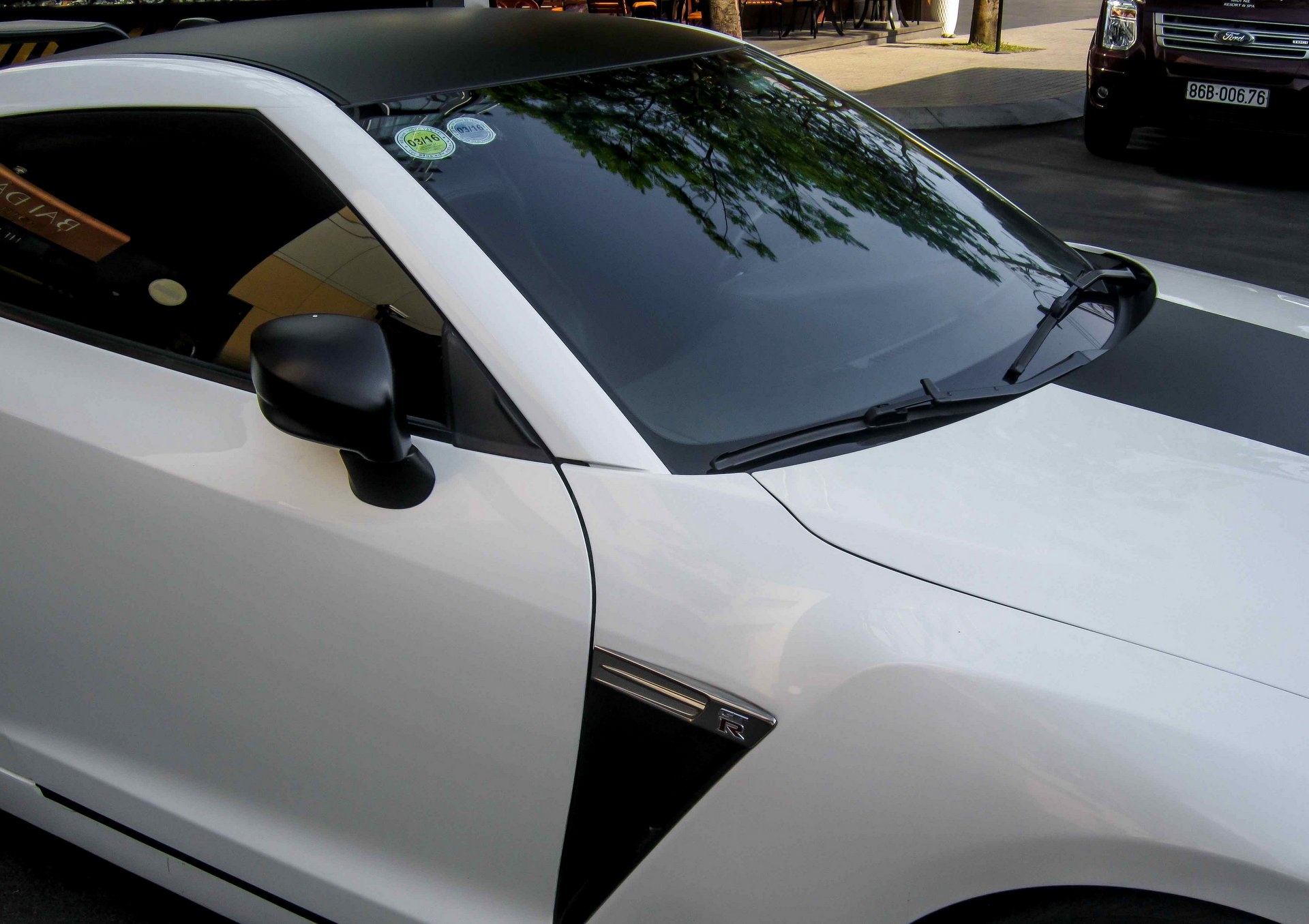 Chiếc Nissan GT-R Premium Edition được chủ nhân dán lại dàn áo, thay đổi từ màu đen bóng thành trắng sữa cùng nhiều phụ kiện độ đặc biệt.