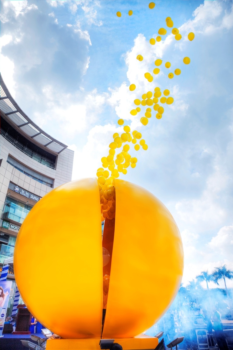 Quả bóng vàng khổng lổ xuất hiện tại trung tâm thương mại Crescent Mall thời gian gần đây không chỉ gây ấn tượng với tất cả mọi người về kích thước, mà còn chứa đựng bí mật khiến ai cũng phải tò mò và mong chờ bởi dòng chữ “Điều gì bên trong?”. Sau nhiều ngày chờ đợi, sáng 7/6, quả bóng vàng khổng lồ đã chính thức phát nổ giải phóng hàng trăm quả bóng vàng tượng trưng cho tinh thể collagen trong sản phẩm dưỡng thể trắng da chứa collagen lần đầu tiên có mặt tại Việt Nam của nhãn hàng NIVEA.