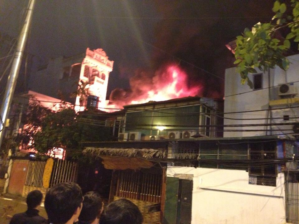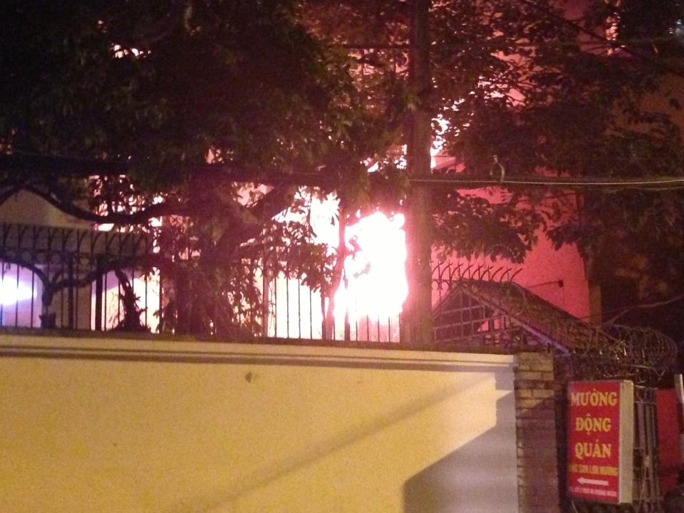 | Đám cháy bắt đầu lúc 19h10 ở quán nhậu có tên là Mường Động. |