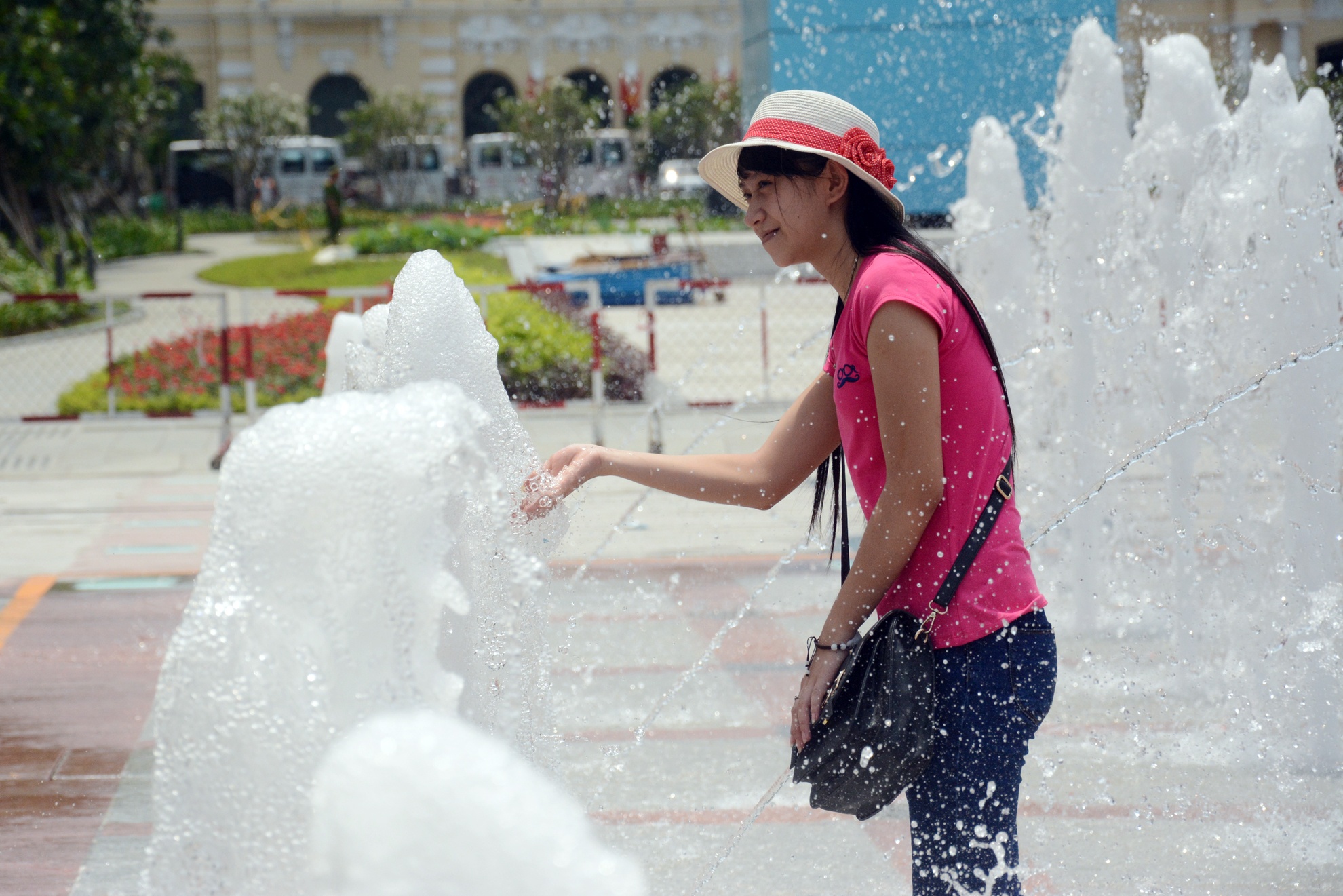 | Hệ thống đài phun nước này hoạt động liên tục trong ngày đầu mở cửa. |