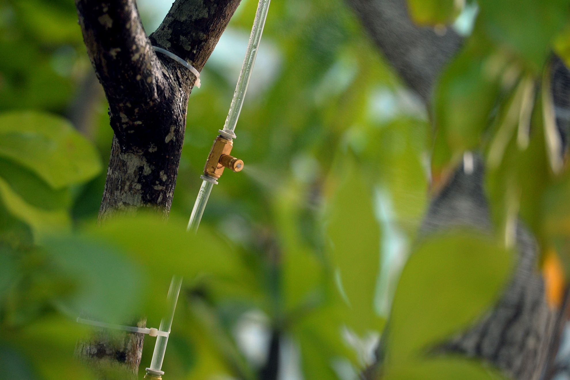 | Đi dưới tán lá, nếu du khách không để ý dễ nhầm tưởng có hạt mưa khi hệ thống phun sương tạo mát được lắp đặt trên các cây lộc vừng. |
