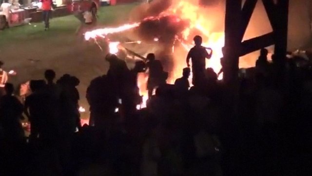 | Lửa bùng lên sau tiếng nổ trong lễ hội pháo hoa tại thành phố Fukuchiyama, tỉnh Kyoto. Ảnh: BBC. |