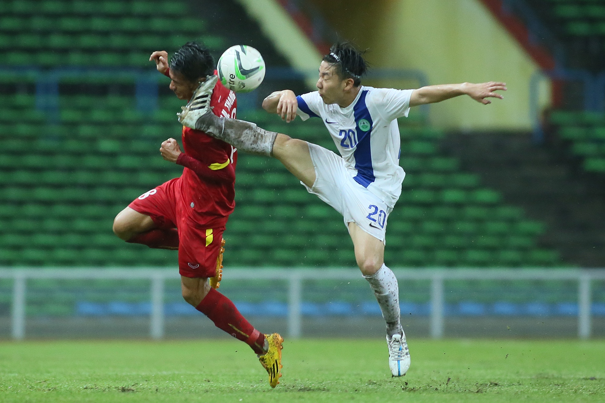 Những pha vào bóng quyết liệt của cầu thủ hai bên biến mặt sân Shah Alam như bãi lầy. Bất chấp hàng thủ số đông của U23 Macau, các cầu thủ áo đỏ vẫn nỗ lực trong từng đường bóng để sớm đạt mục tiêu ghi 7-8 bàn thắng.