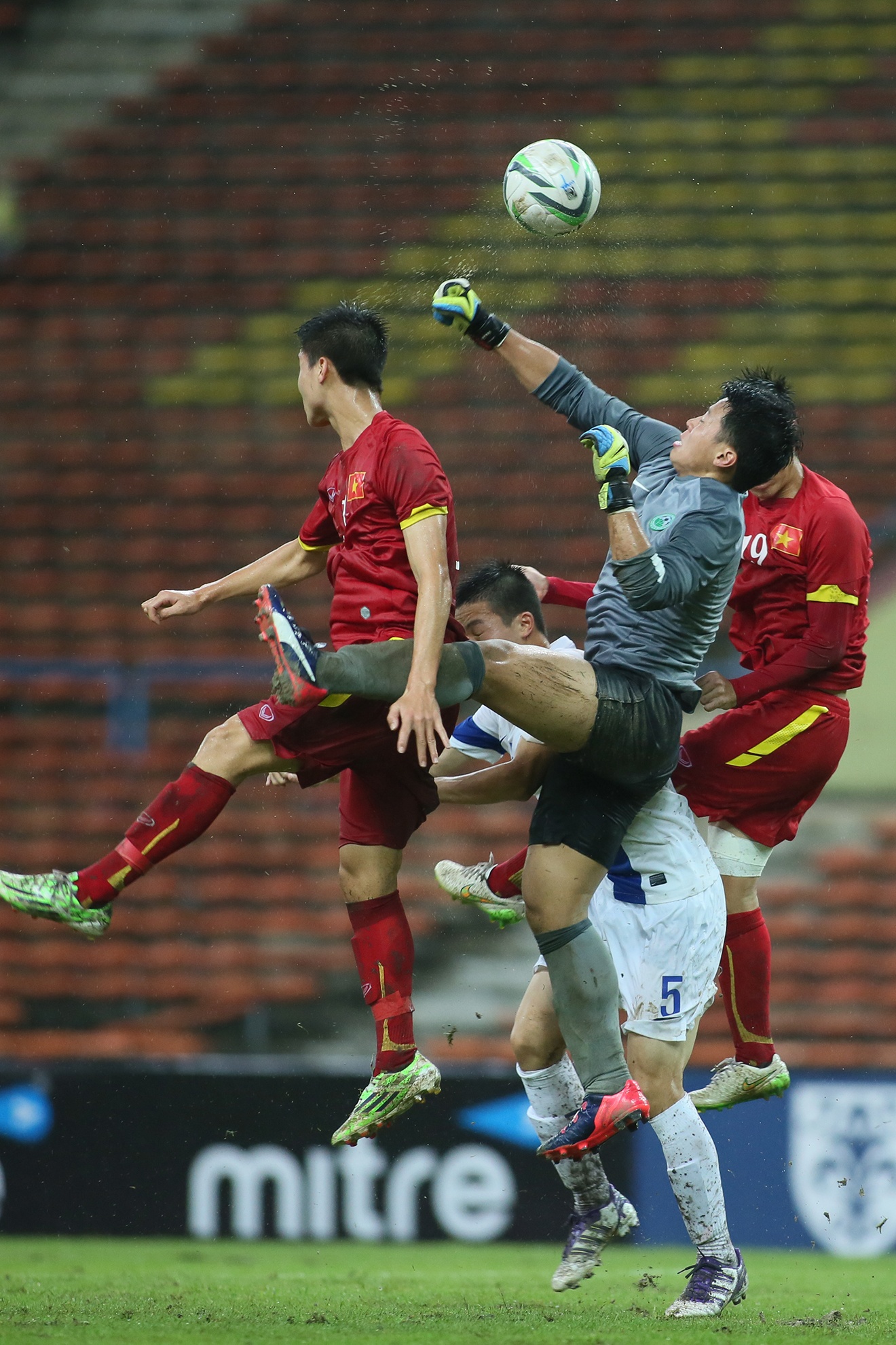 | Trong một buổi tập trước giải cũng trên sân Shah Alam, dưới thời tiết mưa lớn, HLV Miura vẫn yêu cầu các học trò tập luyện đối kháng. Điều này phần nào giúp các cầu thủ Việt Nam làm quen tốt hơn với điều kiện sân trơn, ngập nước. |