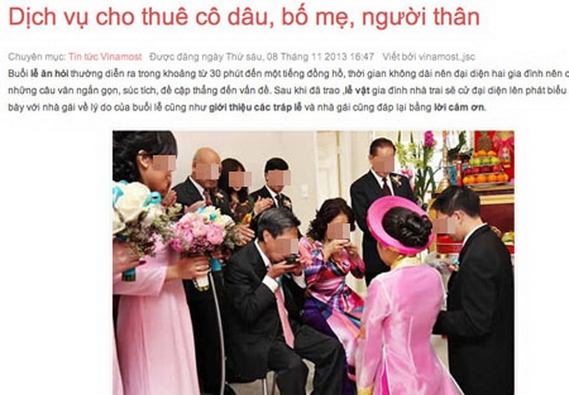 Ví dụ, mẹ cô dâu sinh năm bao nhiêu, làm nghề gì, tên gì; ông chú "cô dâu" tên gì, làm nghề gì, sở thích ra sao, sinh được mấy người con… Tất cả những thông số người thuê cô dâu là chúng tôi phải thuộc như cháo chảy.